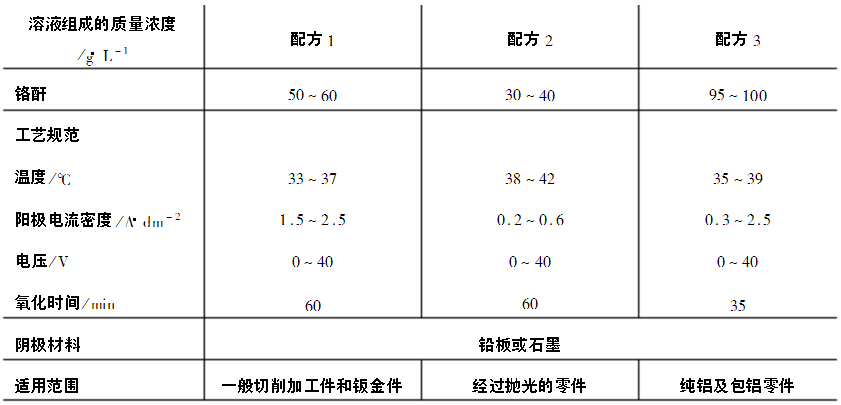 表1是鉻酸陽(yáng)極氧化工藝規(guī)范。