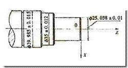 如圖1所示零件,Ø40尺寸為基軸制,Ø35尺寸為基孔制過渡配合,Ø25尺寸為基孔制過盈配合,3個尺寸的公差帶位置不同,如果編程仍按其基本尺寸Ø40、Ø35與Ø25,而不考慮公差帶位置的影響,就可能使某個尺寸數(shù)控加工不符合要求。解決問題的辦法有2種: