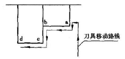 1)如圖3所示,精加工工件輪廓為a→b→c→d,如采用如圖4所示的刀具移動路線就不妥,因為從①→②的運動方向與③→④相反,會產(chǎn)生反向間隙,如改為圖5所示的刀具移動路線,數(shù)控加工、精加工時刀具在徑向的移動保持尺寸連續(xù)遞增趨勢,在軸向的移動保持尺寸連續(xù)向左趨勢,這樣便消除了機(jī)床的反向間隙的影響。